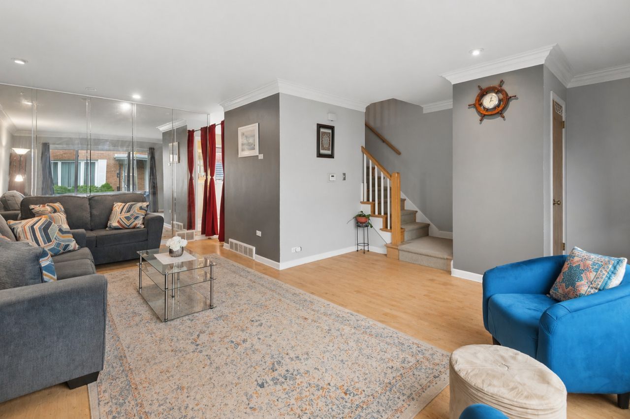 This charming 3-bedroom, 1.5-bath townhome stands out with NO HOA FEES and includes a dedicated exterior parking space. Inside, you'll find a bright and welcoming layout with hardwood floors beneath the carpeting, elegant crown molding, and generous living areas throughout. The kitchen has been updated with newer appliances and offers ample cabinet space for storage. The finished basement adds valuable extra living space, complete with built-in shelving-ideal for entertaining, a home office, or a recreation area. All three bedrooms are located on the second level, providing a functional and private layout. Step outside to enjoy the backyard, featuring a paver patio and a storage shed for added convenience. Recent updates include a new furnace (2024), interior paint (2023), and hot water heater (2022). Guests will appreciate the abundance of free street parking with no permit required. Conveniently located just minutes from the Metra, downtown Park Ridge, Centennial Park, and a variety of restaurants and shops. This home is also within the highly desirable Main South High School district. Don't miss this opportunity-schedule your showing today! Showings will begin Saturday 4/25 from 12:00-3:00 PM and Sunday 4/26 from 2:00-4:00 PM.